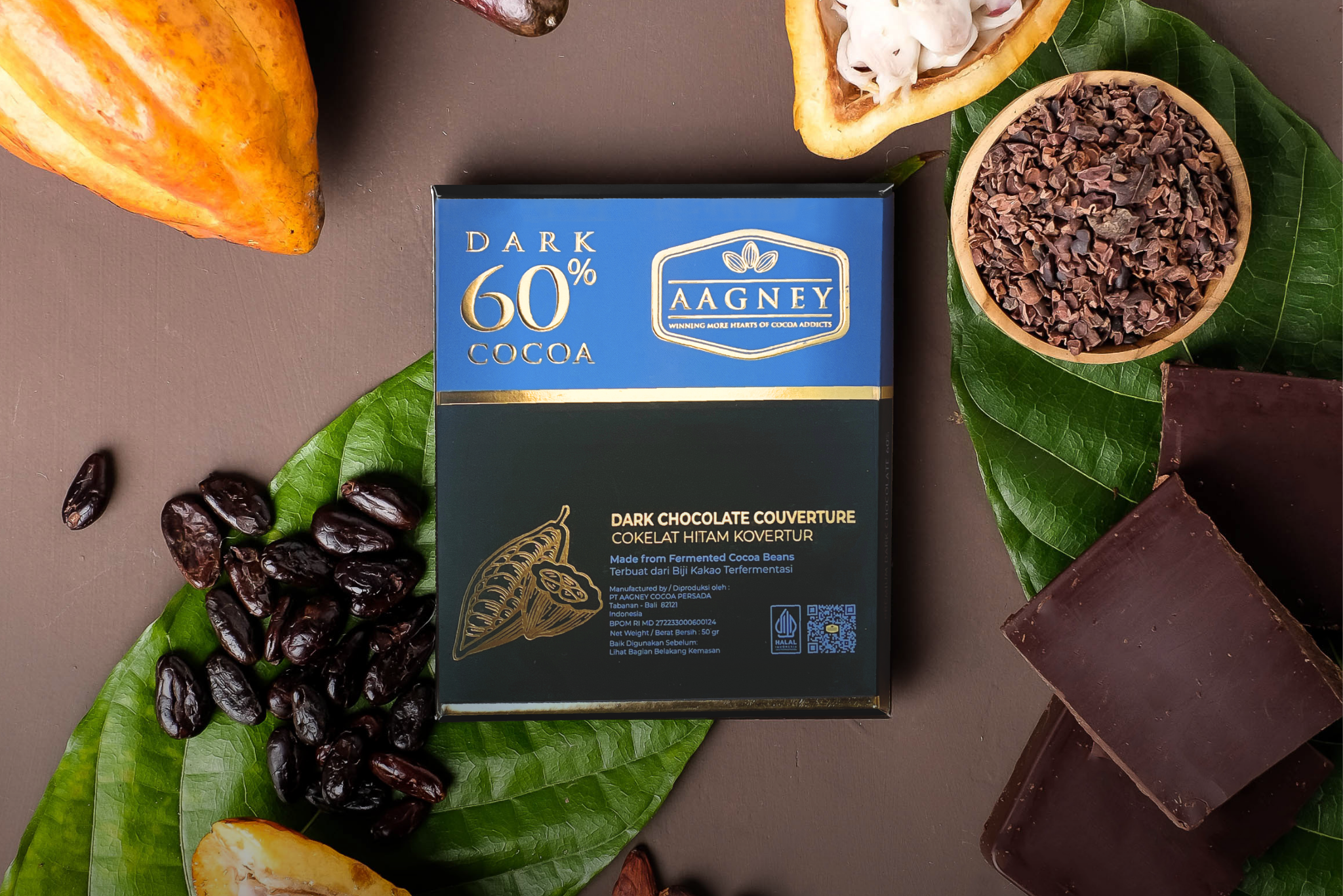 Aagney Chocolate Dark 60% Cocoa is our semi-sweet dark chocolate bar, that is exclusively created using the best organic and fair trade fermented cocoa beans, it embodies our commitment to quality and traceability in the cocoa industry.