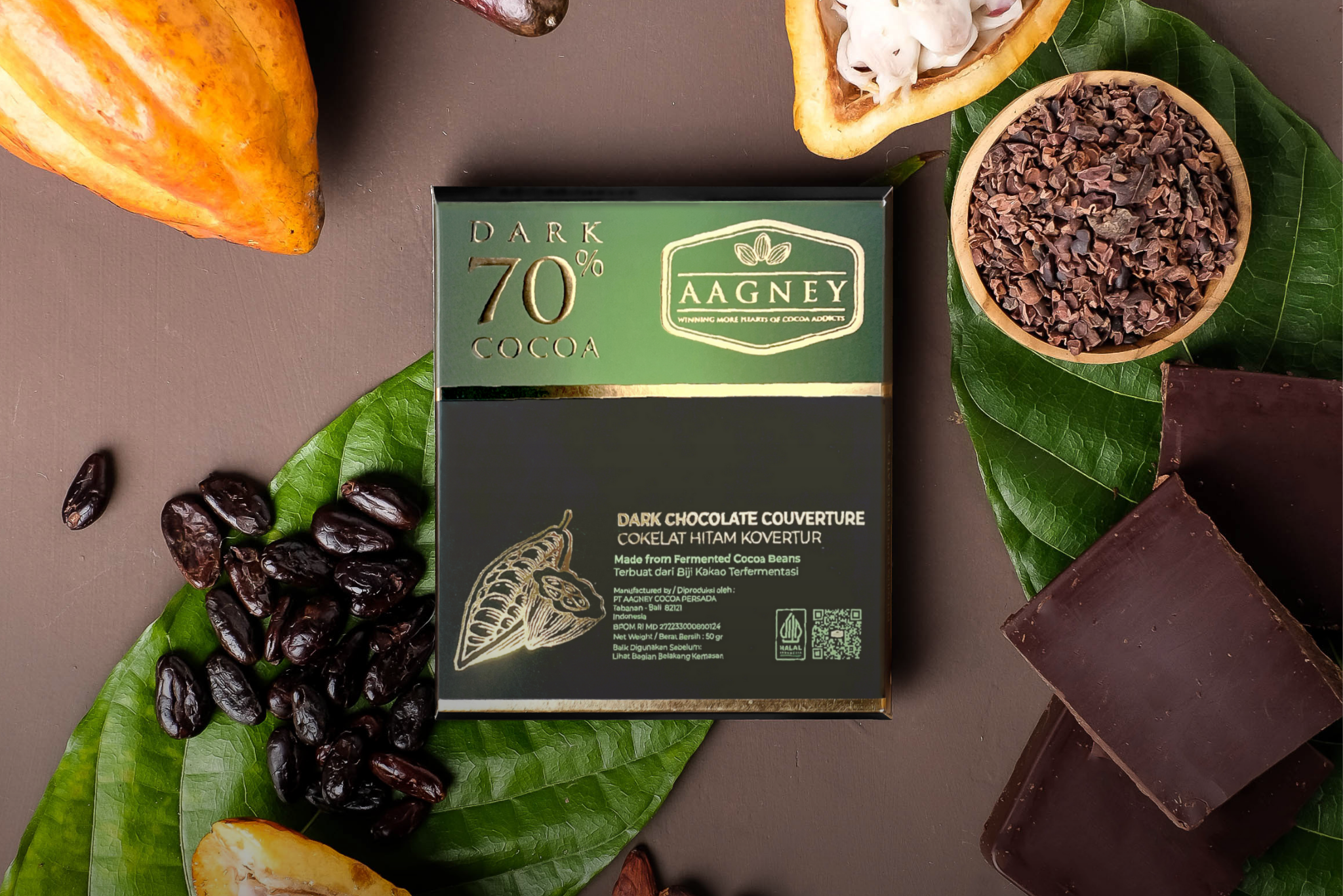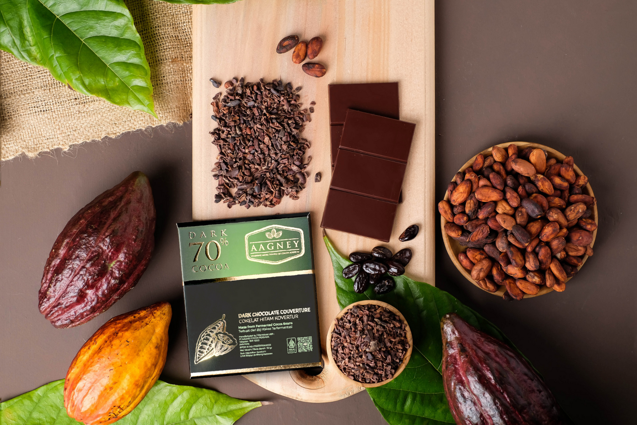 Aagney Chocolate Dark 70% Cocoa is our bitter sweet dark chocolate, that is exclusively created using the best organic and fair trade fermented cocoa beans, it embodies our commitment to quality and traceability in the cocoa industry.