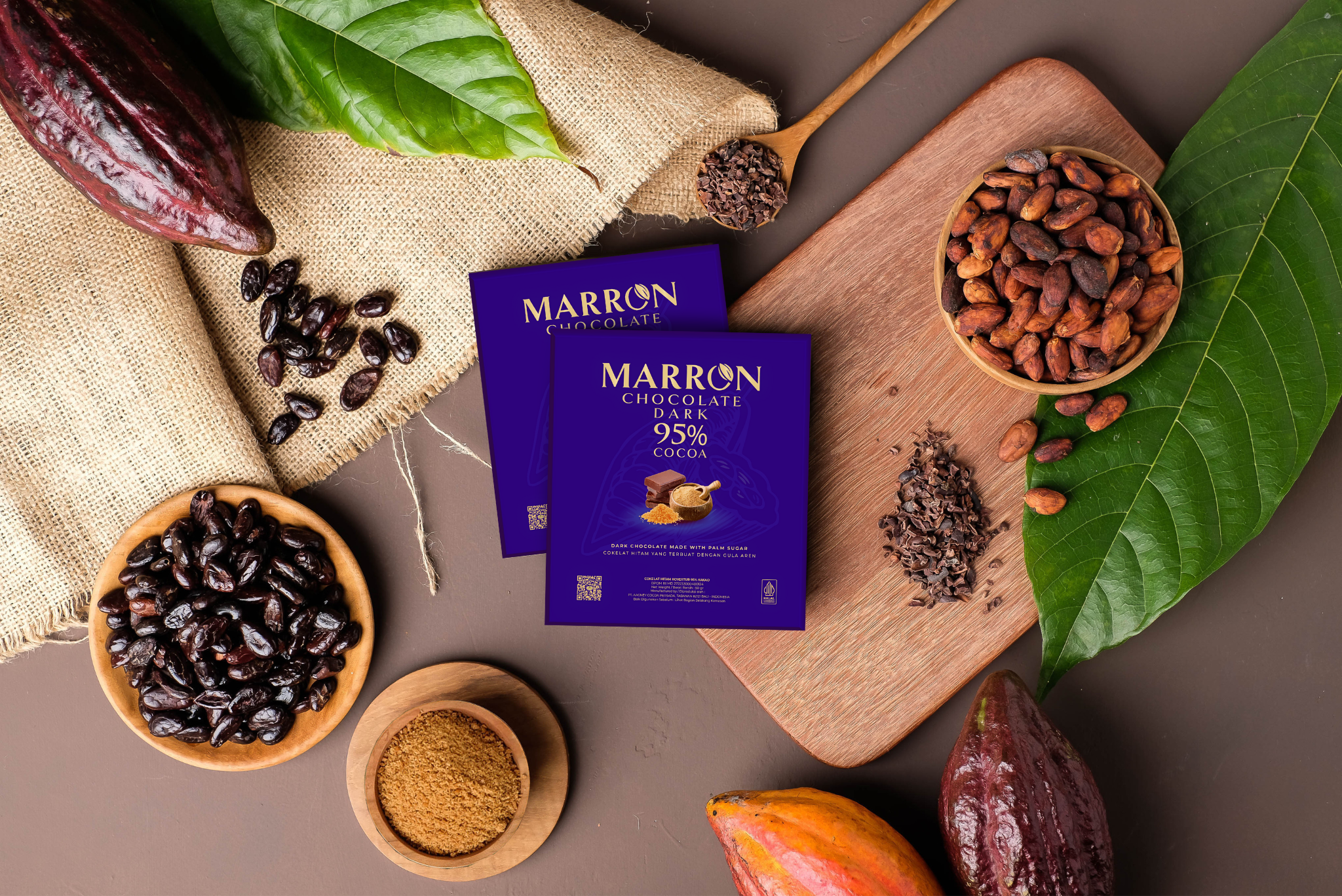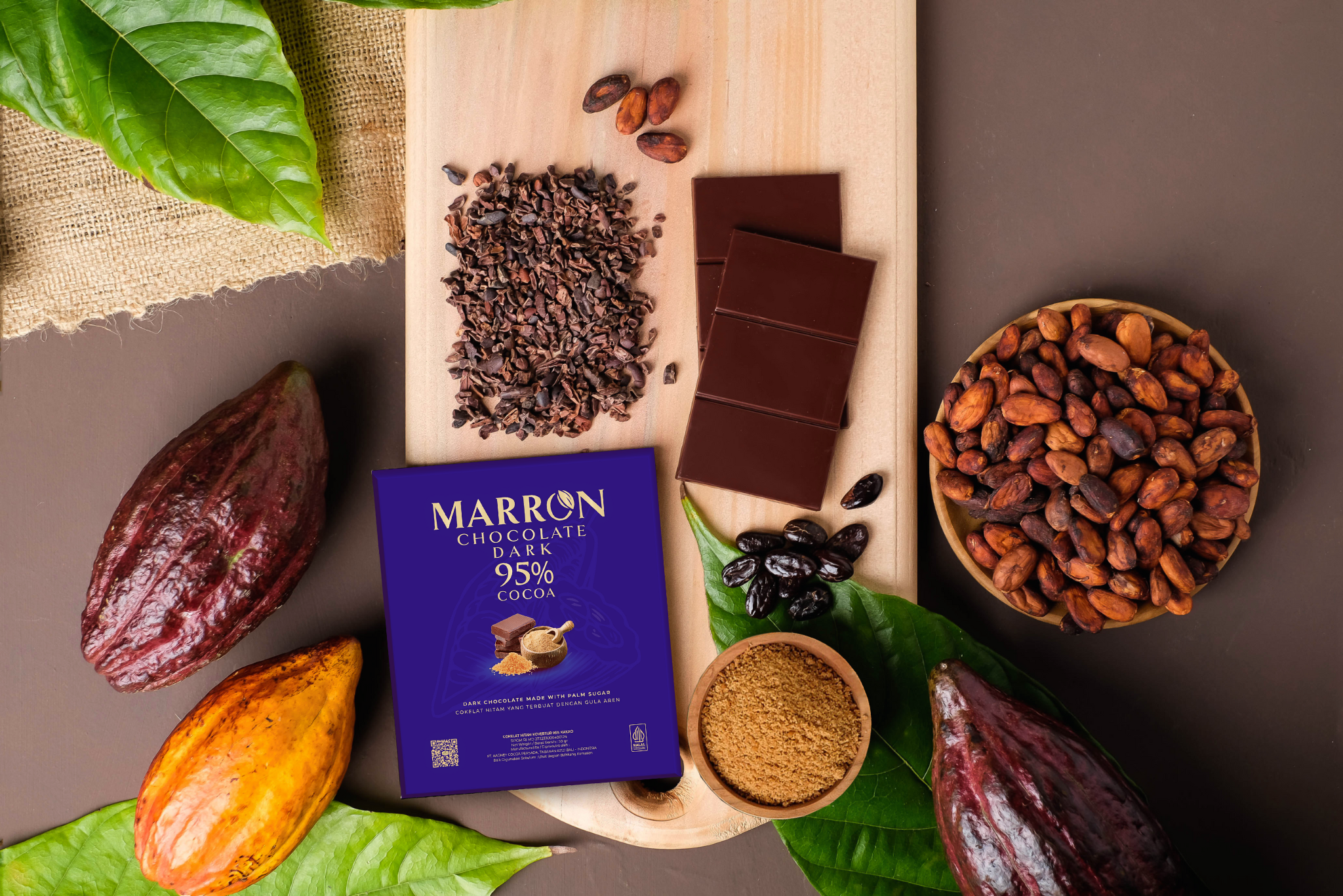 Enjoy the perfect taste of Marron Chocolate Dark 95% Cocoa, the combinations of fermented cacao beans and palm sugar that is bitter, slightly sweet, and unique. If you are currently vegan, or planning to adopt a plant-based diet, Aagney offers Marron series as an option of vegan chocolate and vegan gift. Made without any white sugar and another ingredient, only cocoa beans, cocoa butter and palm sugar
